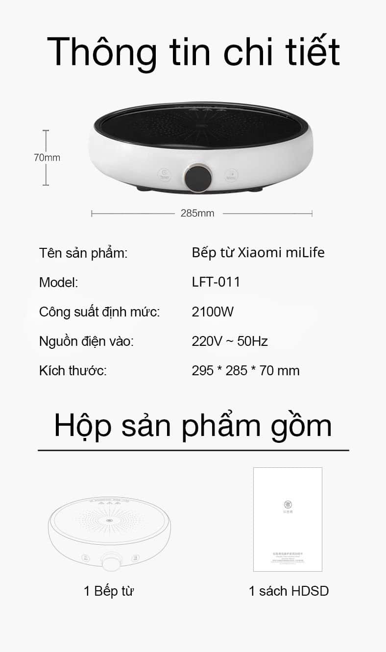 Để giúp bạn hiểu sâu hơn về sản phẩm, dưới đây là các thông số kỹ thuật quan trọng của bếp từ miLife LFT011 tròn: