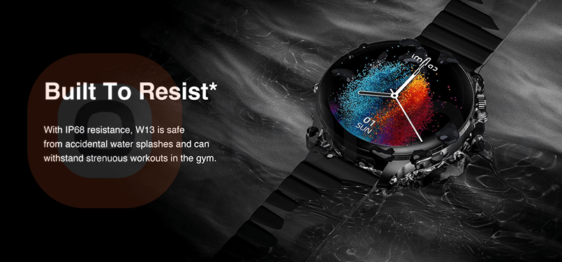 Trải qua hơn 10 quy trình CNC nghiêm ngặt cùng sự gia công chắc chắn, đồng hồ thông minh Imilab W13 đạt tiêu chuẩn kháng nước IP68, cho khả năng hoạt động tốt trong nhiều hoạt động thường ngày như đi mưa, rửa tay, mồ hôi và cả đi tắm, đi bơi. Tuy nhiên, để đảm bảo về chất lượng cũng như tuổi thọ của đồng hồ, người dùng không nên mang theo khi đi tắm hay đi bơi vì nhiệt độ và độ mặn của nước sẽ ảnh hưởng đến độ bền của thiết bị.