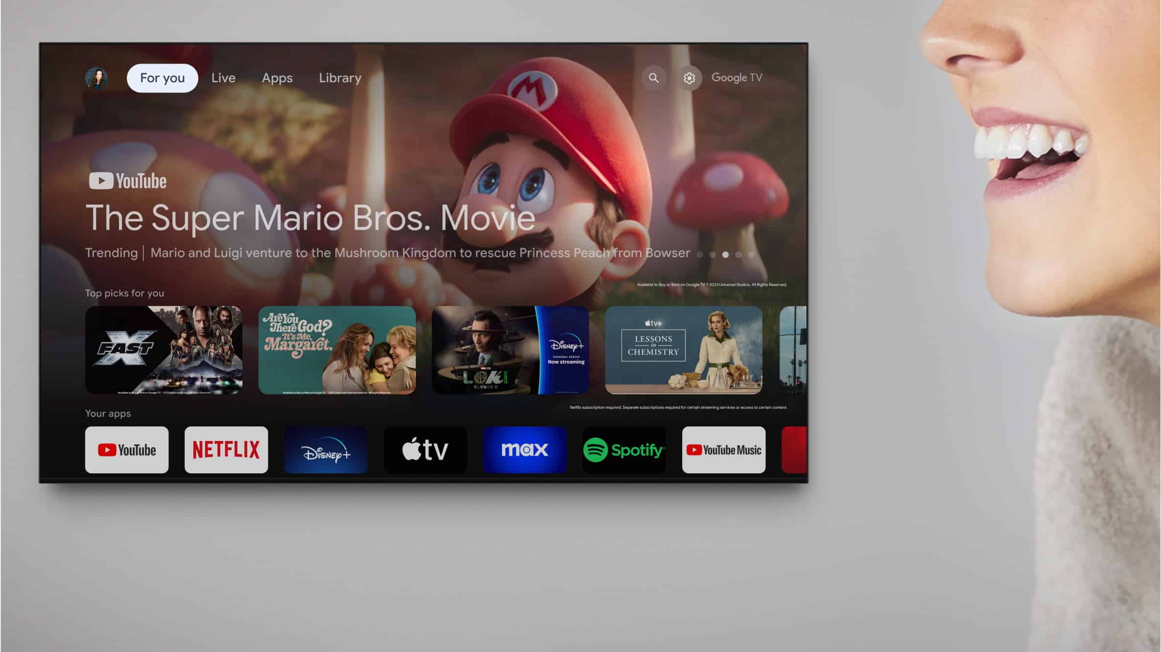 TV của bạn hữu ích hơn bao giờ hết. Yêu cầu Trợ lý Google tìm phim, truyền phát ứng dụng, phát nhạc và điều khiển TV bằng giọng nói của bạn. Nhận câu trả lời, điều chỉnh nhiệt độ phòng và ánh sáng, thậm chí kiểm tra cửa trước. Chỉ cần nói “Ok Google” để bắt đầu.