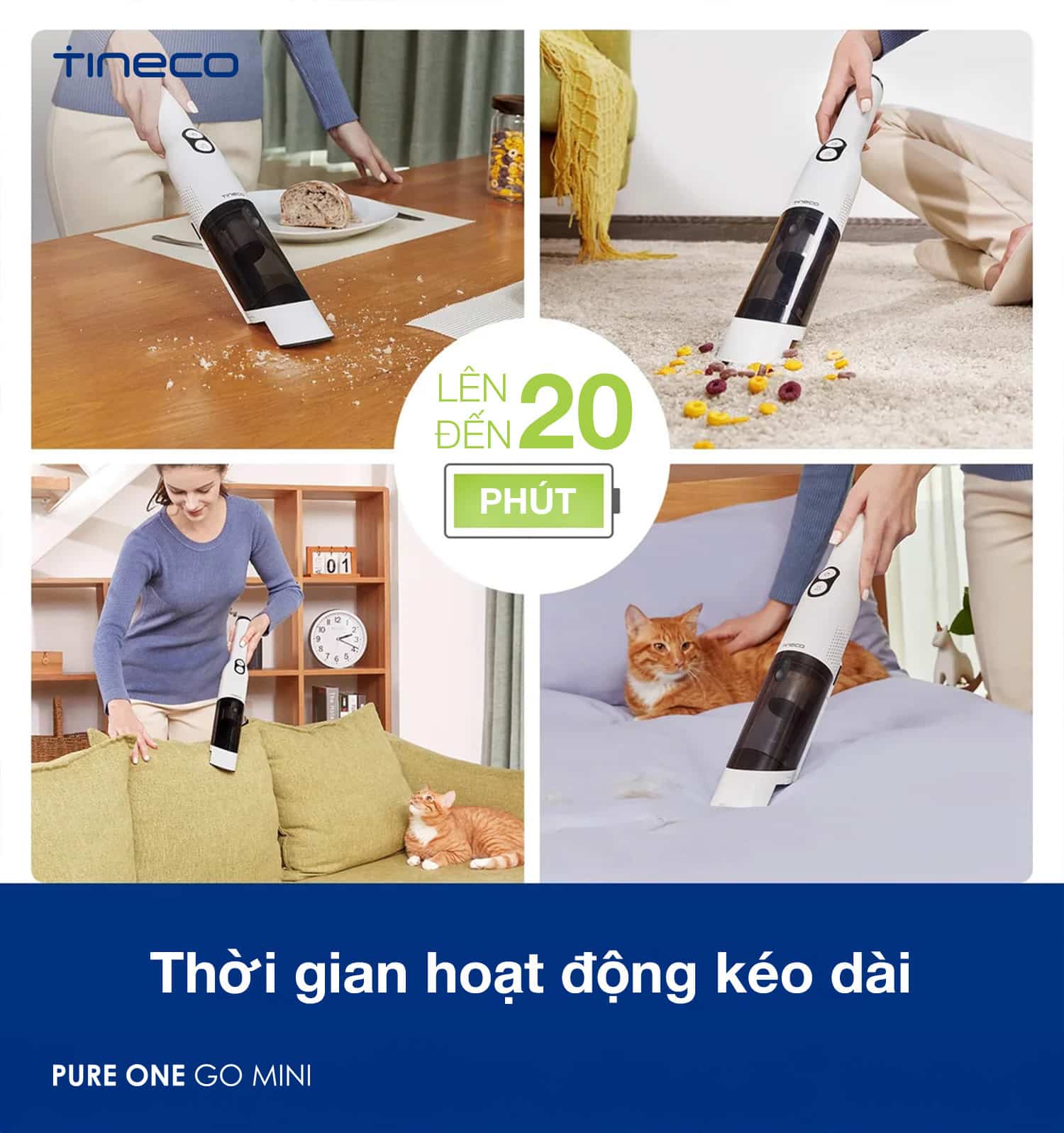 Máy hút bụi cầm tay Tineco Go Minio với dung lượng pin 2000mAh, sử dụng liên tục 20 phút