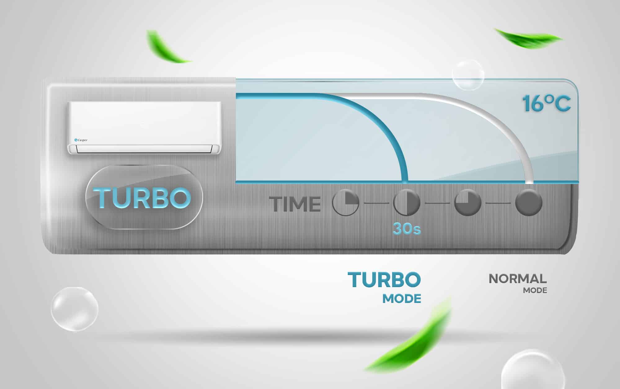 Một điểm nổi bật là tính năng làm lạnh nhanh Turbo, giúp máy đạt được nhiệt độ mát trong vòng khoảng 30 giây sau khi bật chế độ này. Đây là tính năng quan trọng khi trời rất nóng, người dùng muốn sử dụng máy lạnh ngay lập tức.