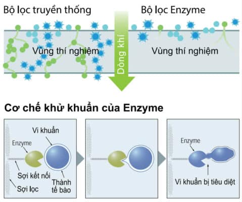 Máy sử dụng bộ lọc Enzyme giúp tiêu diệt vi khuẩn, nấm mốc và các vi sinh vật trong không khí.
