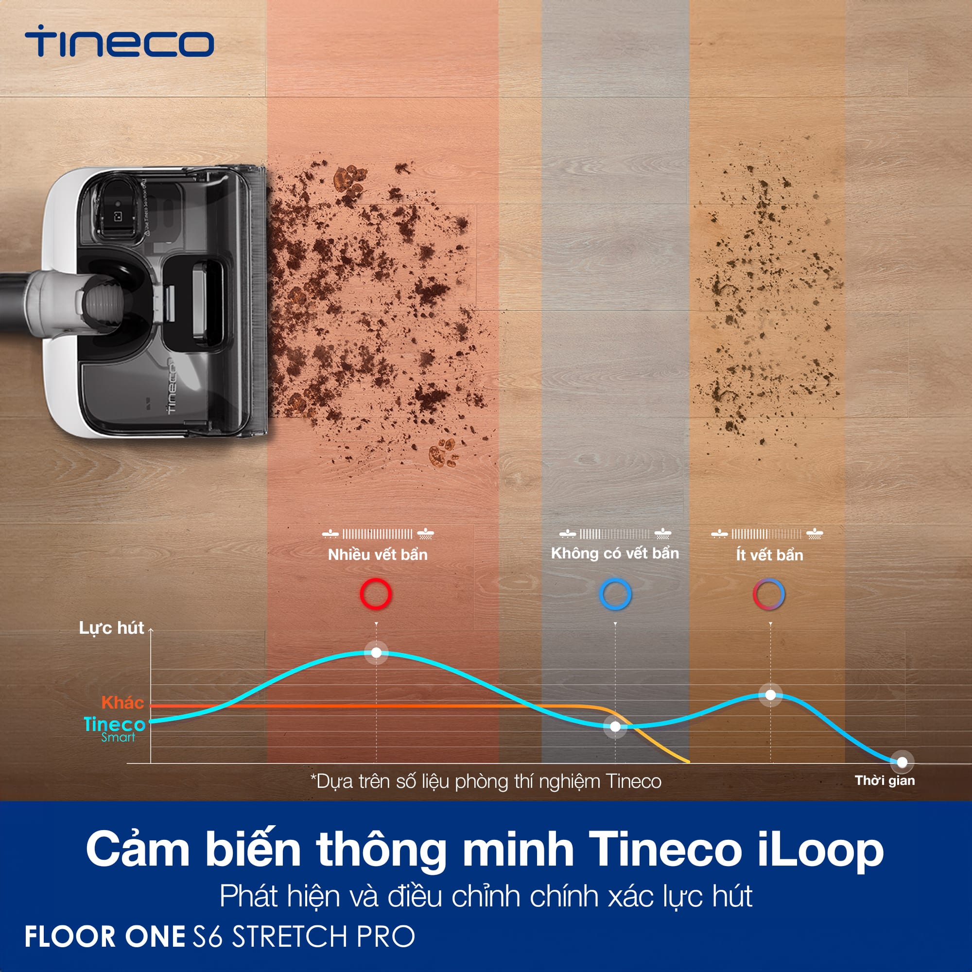 Cảm biến iLoop™ theo dõi và phân tích mức độ bẩn trên sàn. Dựa vào dữ liệu, iLoop™ tự động điều chỉnh lực hút và lượng nước phun, tối ưu hóa hiệu quả làm sạch. Máy sẽ tăng lực hút khi gặp vết bẩn cứng đầu và giảm khi sàn đã sạch, giúp tiết kiệm nước và đảm bảo làm sạch tối ưu.