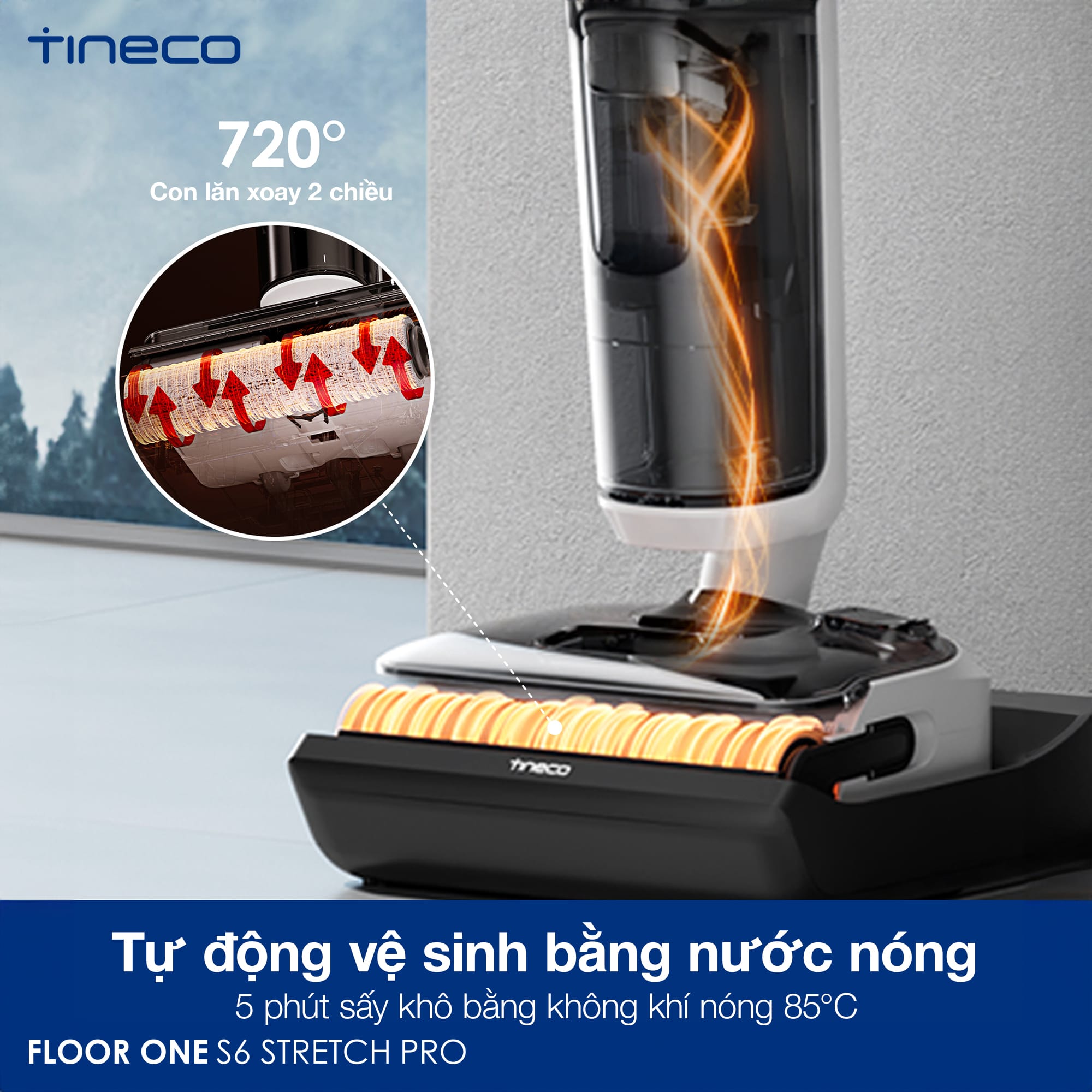 Máy lau nhà khô ướt cầm tay Tineco Floor One S6 Stretch Pro với khả năng làm sạch, sấy khô chuỗi ở 85°C