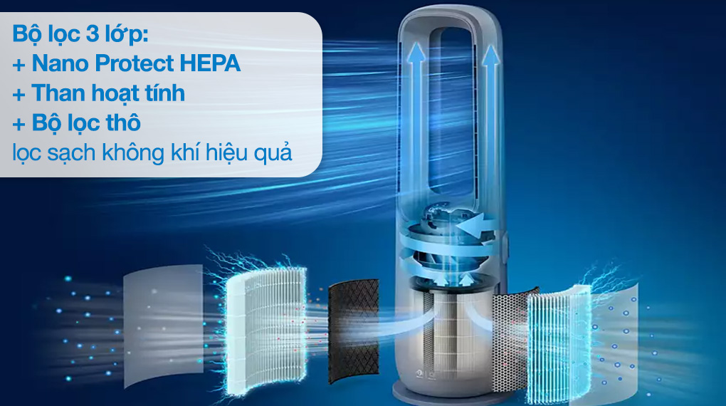 Lọc hiệu quả cao với công nghệ NanoProtect HEPA + than hoạt tính