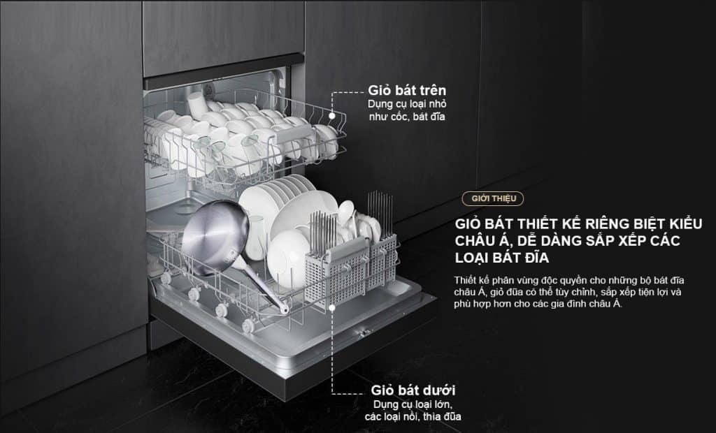 Giỏ bát được thiết kế riêng biệt kiểu châu Á, dễ dàng sắp xếp và tùy chỉnh.