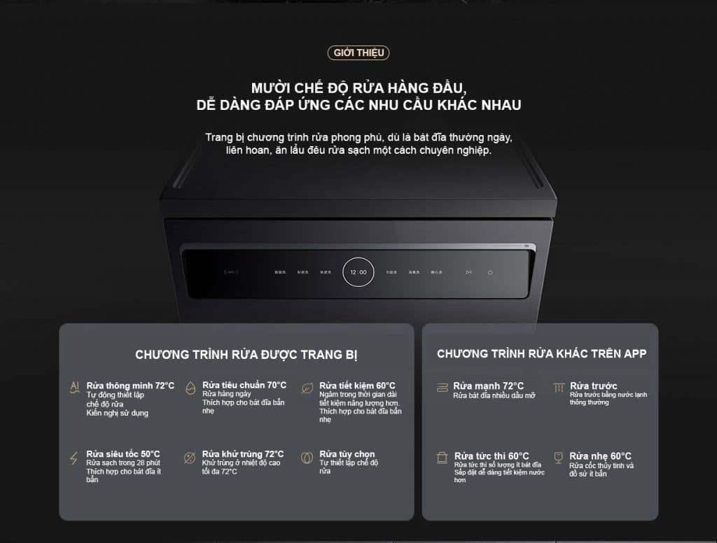 Tích hợp 10 chế độ rửa hàng đầu, dễ dàng đáp ứng các nhu cầu khác nhau một cách chuyên nghiệp.