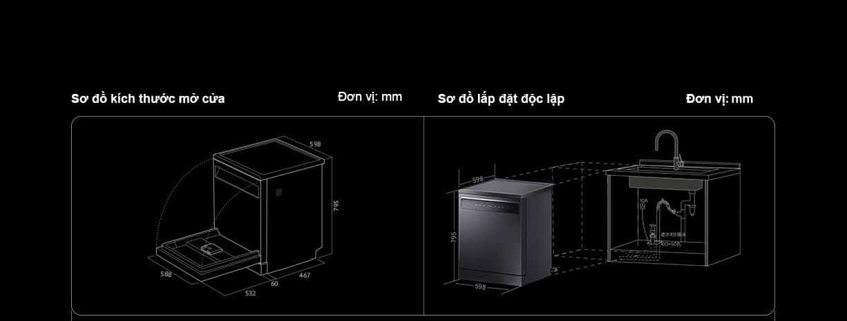 Máy rửa bát Xiaomi đứng độc lập 60cm cho 15 bộ chén đĩa VDW1501M