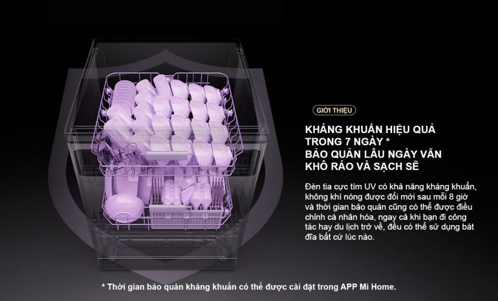 Có đèn tia cực tím UV với khả năng kháng khuẩn, giúp bảo quản lâu ngày mà bát đĩa vẫn khô ráo và sạch sẽ.