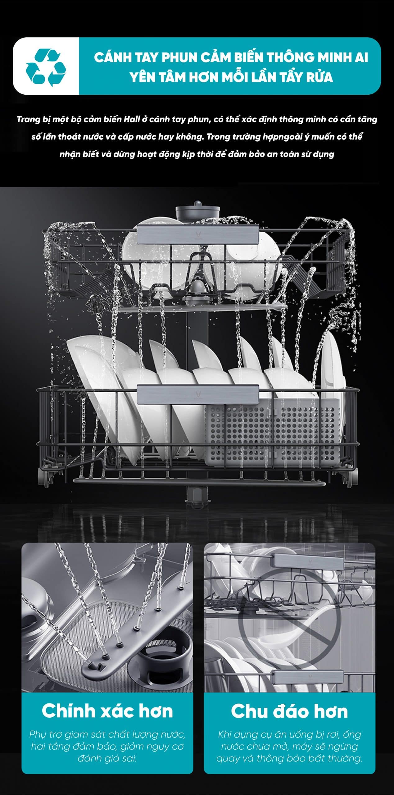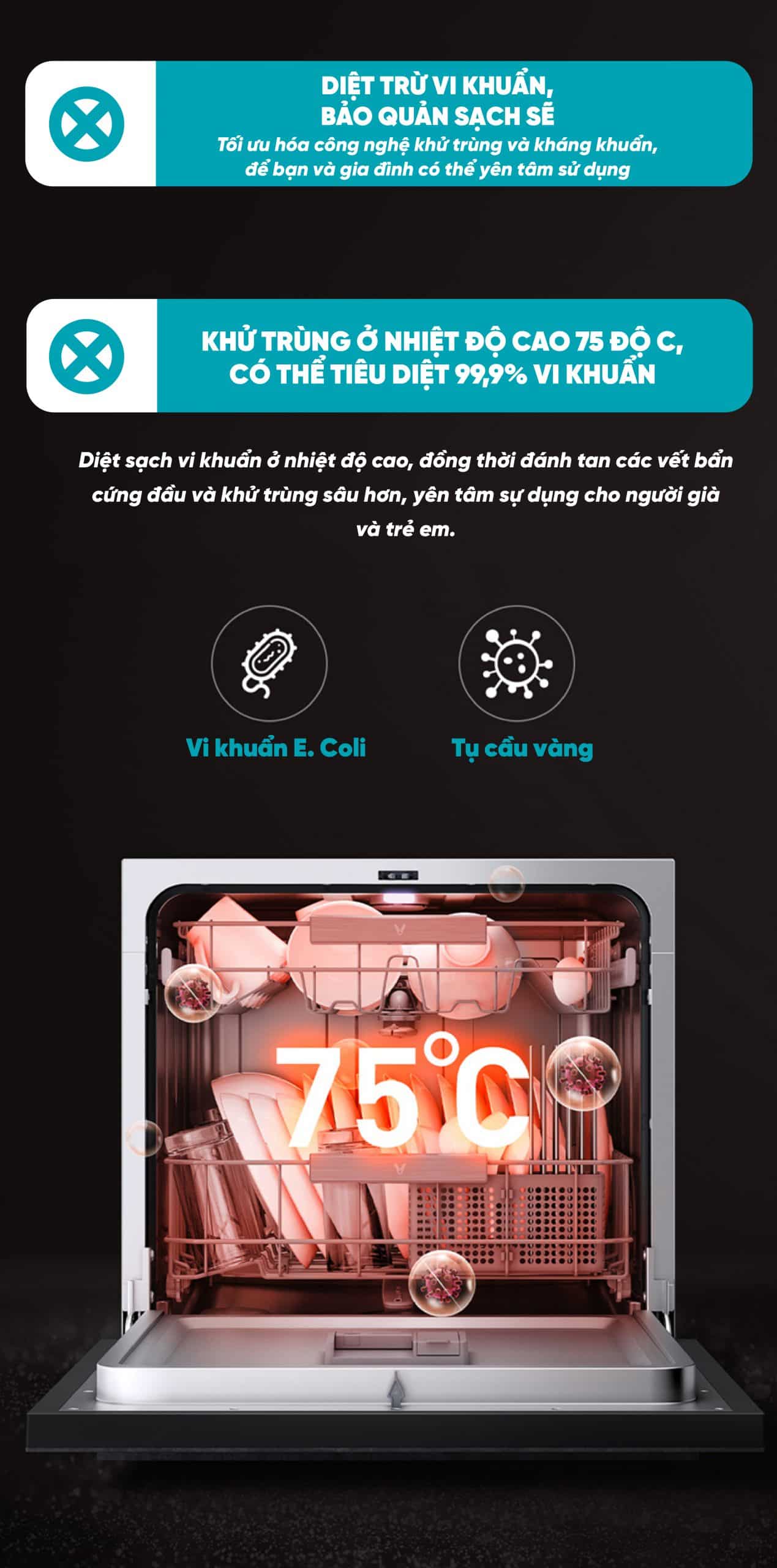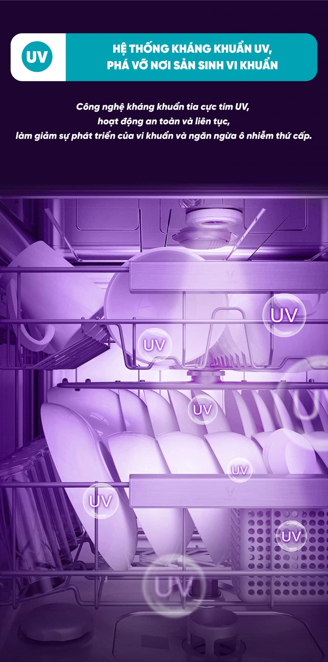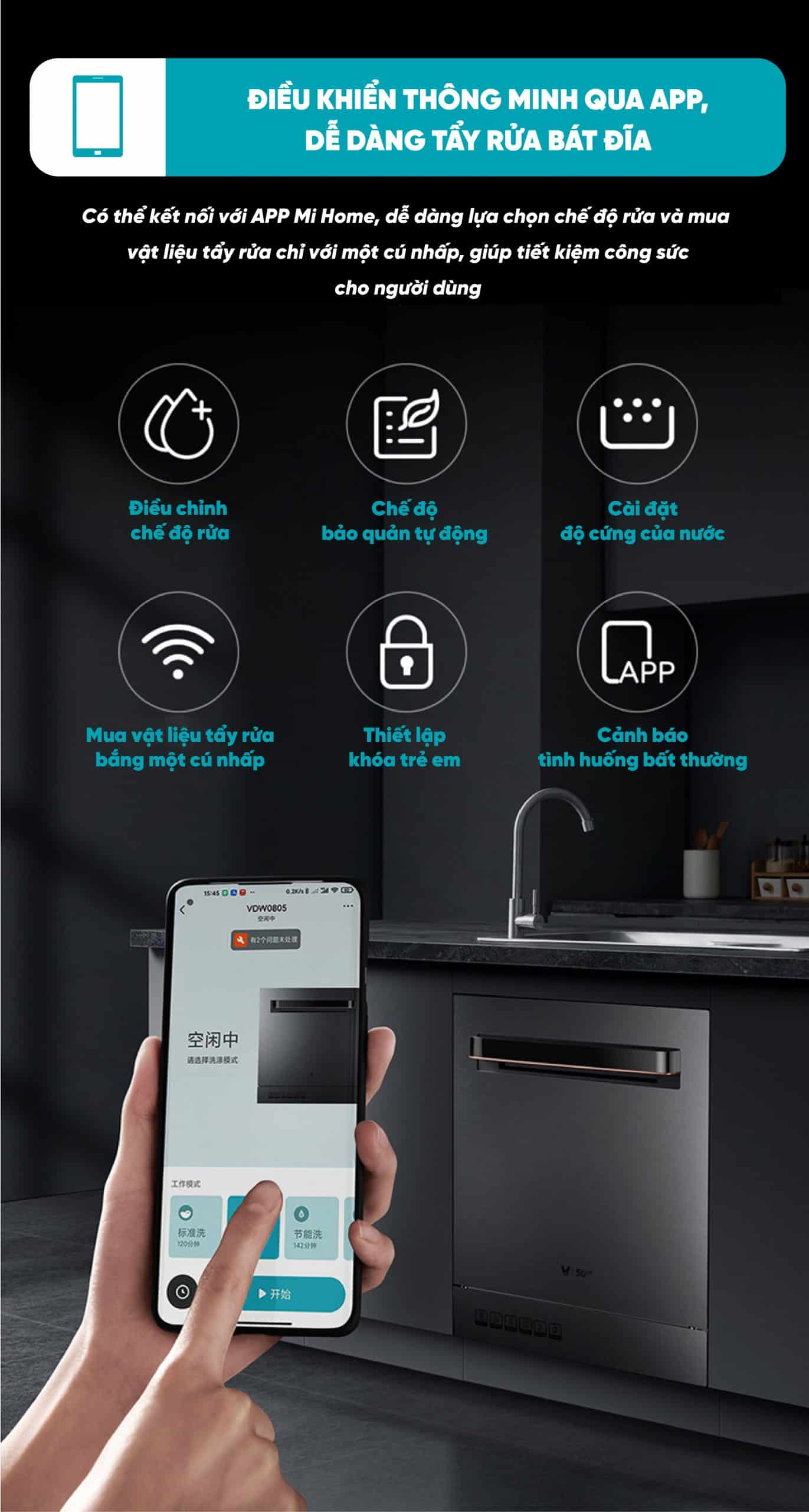 Dưới đây là một số tính năng và đặc điểm nổi bật của máy rửa bát Xiaomi Viomi VDW0805: