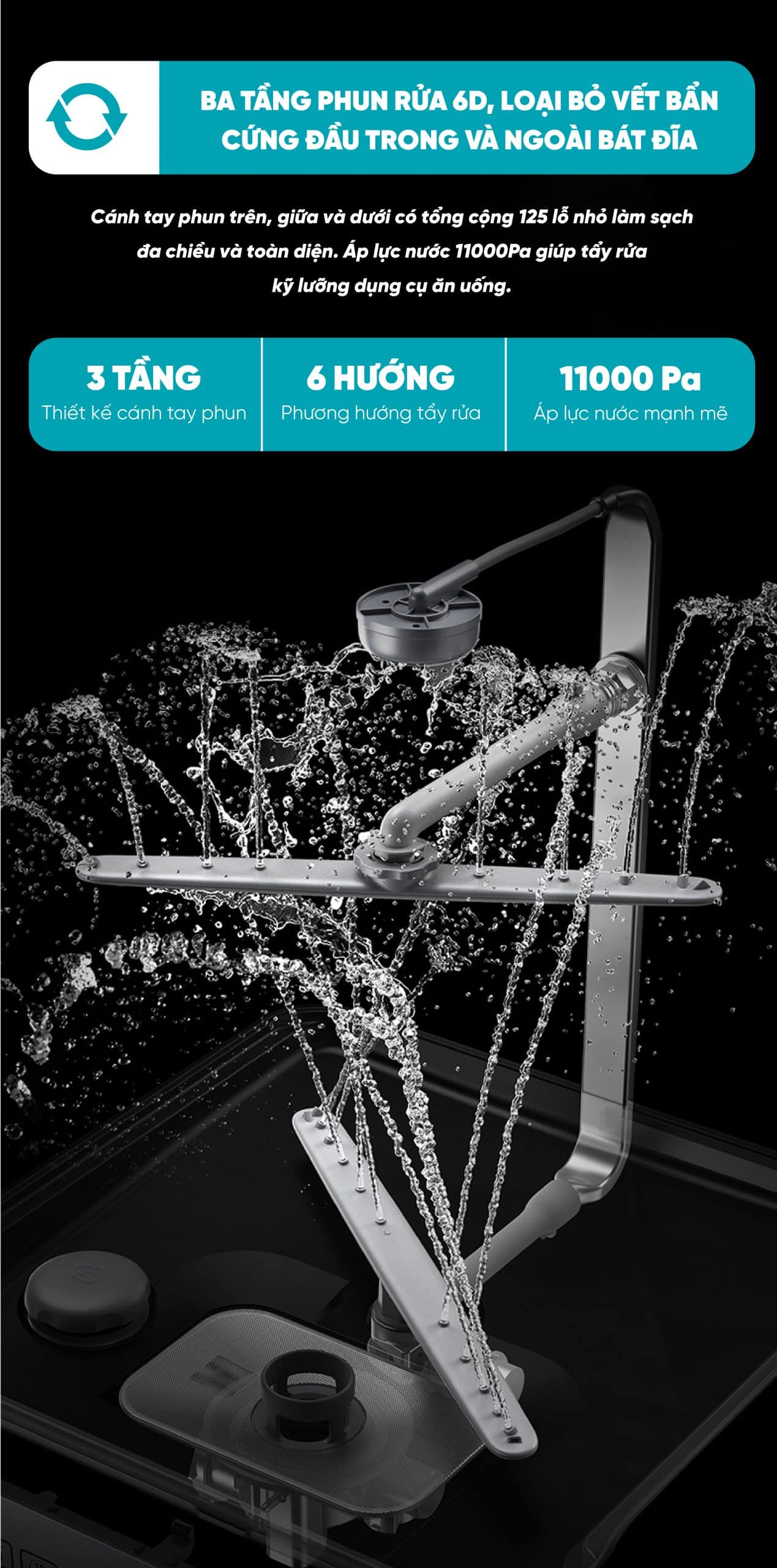 2. Tiết Kiệm Năng Lượng: Máy rửa bát này được thiết kế để tiêu thụ ít nước và năng lượng, giúp giảm chi phí hàng tháng cho gia đình.