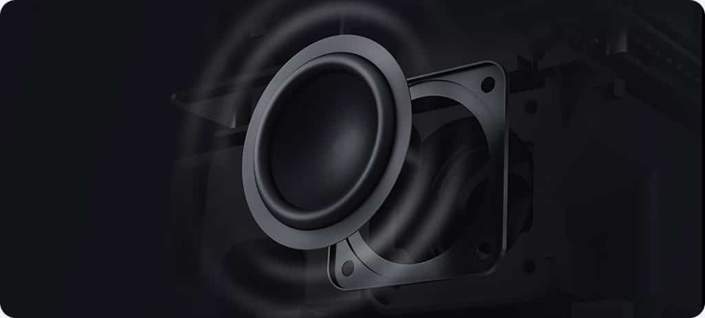 Mi Smart Projector 2 được điều chỉnh khối lượng và kích thước phù hợp với mọi không gian. Cấu trúc tích hợp của khoang âm thanh lớn và ống dẫn âm dài đảm bảo chất âm chuẩn từ nguồn phát. Tần số cũng có thể giảm thấp xuống dưới 90Hz. Kết nối thông minh với chuẩn Bluetooth mới nhất cho sự liền mạch và trải nghiệm hoàn hảo