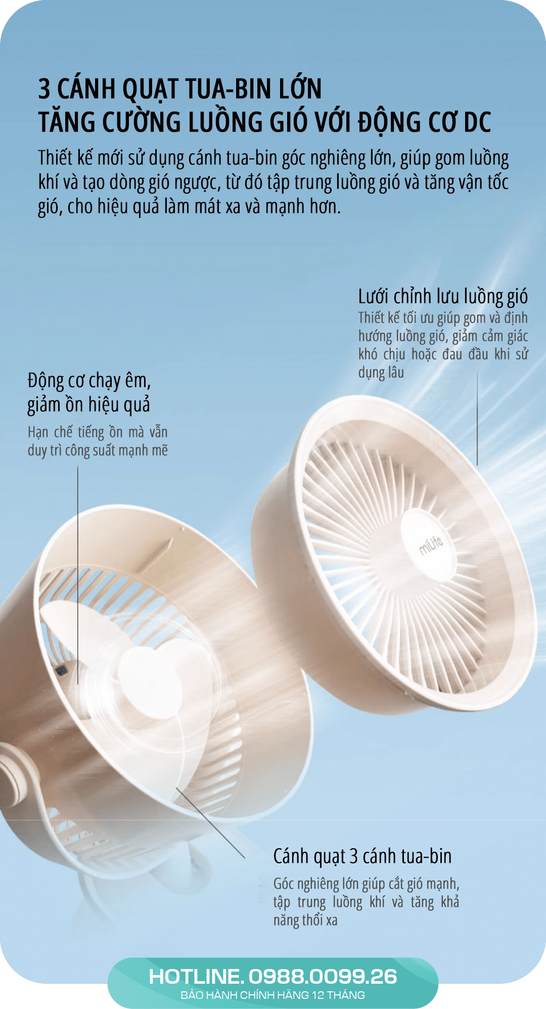 • Thời gian sử dụng: 3-10 giờ tùy theo chế độ gió