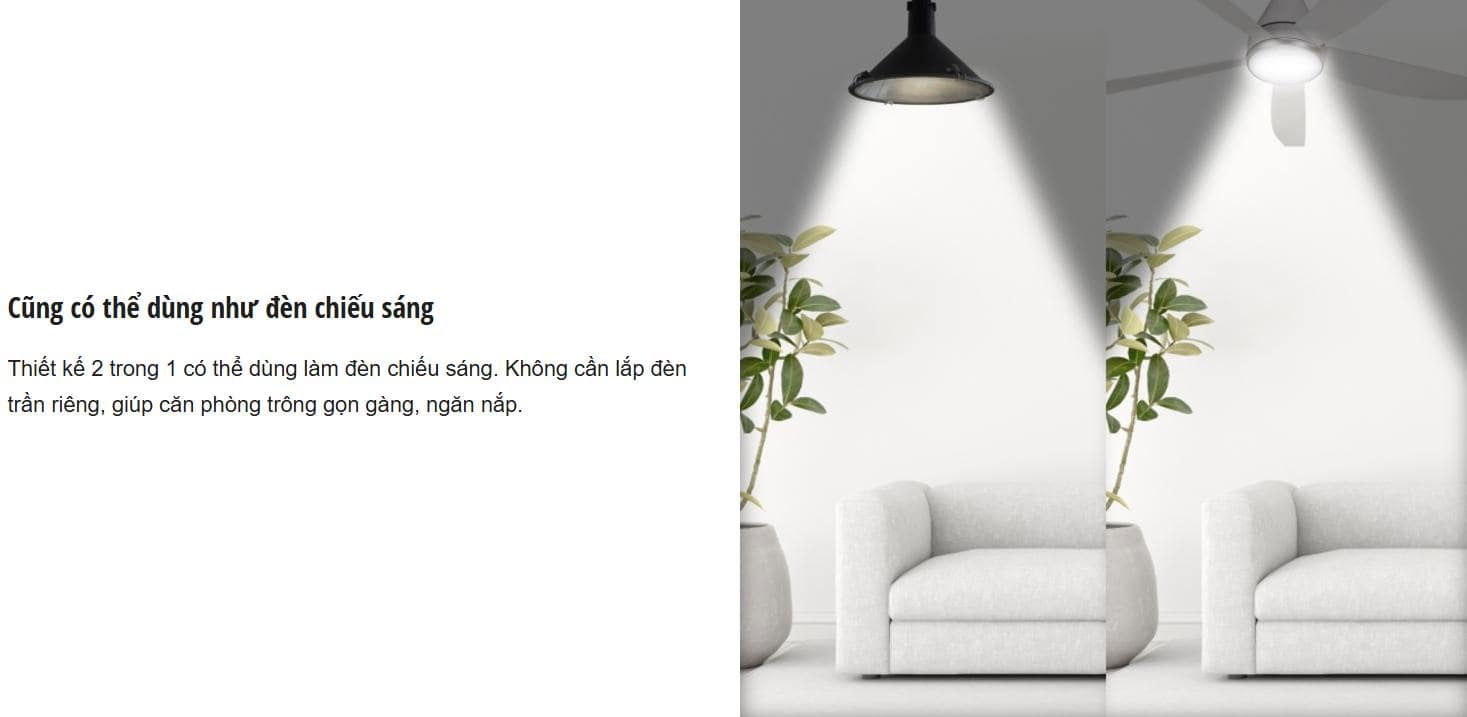 - Tiết kiệm chi phí điện năng: Quạt trần này hoạt động rất tiết kiệm điện, giúp bạn giảm chi phí hóa đơn điện hàng tháng.