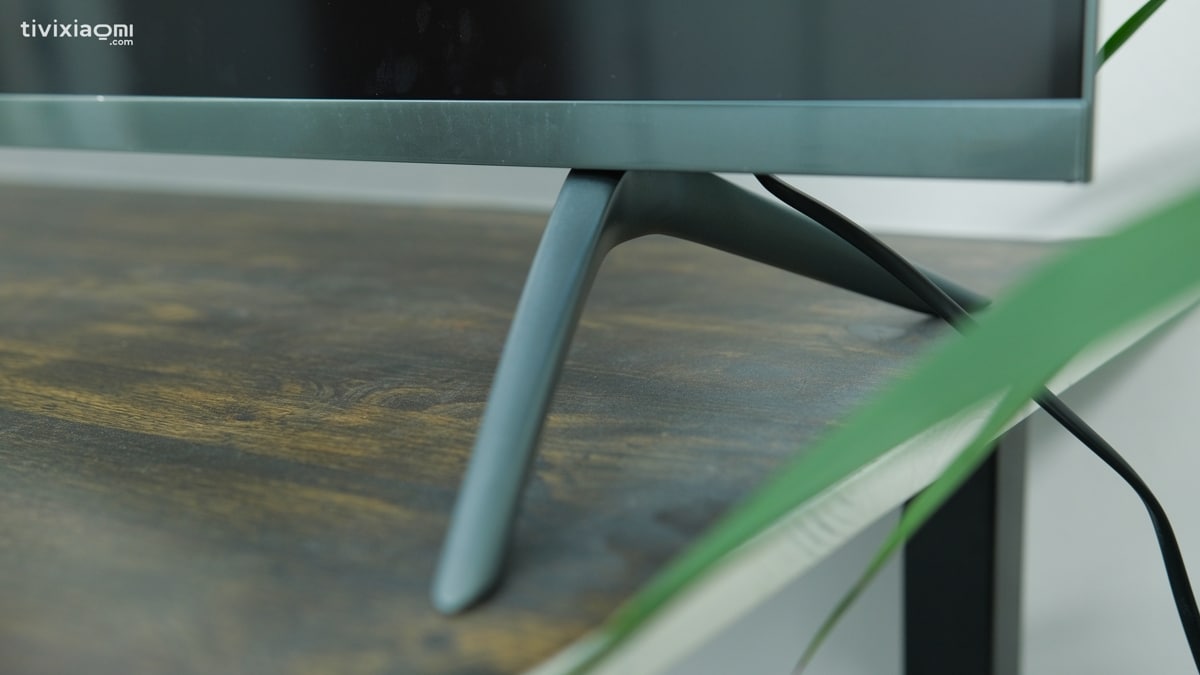 Về tổng quan thiết kế thì chiếc Mi tivi này không có điểm gì thay đổi so với chiếc Mi Tivi 5 55 inches, điểm khác biệt lớn nhất mà bạn có thể nhận thấy ngay đó chính là kích thước của màn hình lớn hơn lên tới 65 inches. Cũng chính vì kích thước màn hình lớn và trọng lượng của sản phẩm cũng không hề nhẹ nên Xiaomi đã trang bị 2 chân đế bằng kim loại hình chữ V màu xám chì rất chắc chắn đi kèm.