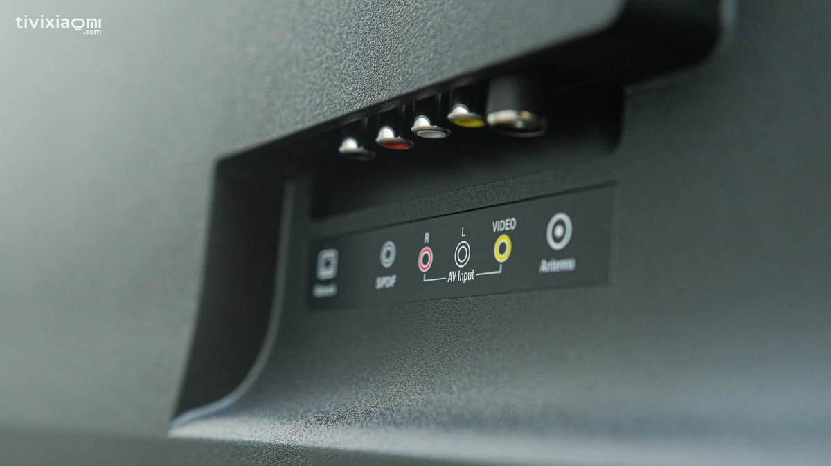 Phần mặt lưng này được làm bằng nhựa nhám đen, phía bên phải chúng ta có dây nối nguồn bên cạnh trái là các cổng kết nối USB và xuất tín hiệu, chúng ta có 2 cổng USB và 3 cổng HDML. Ngoài ra chúng ta có thêm 1 cổng LAN, một cổng anten 1 cổng SFDIF và 2 cổng Audio input và Video.