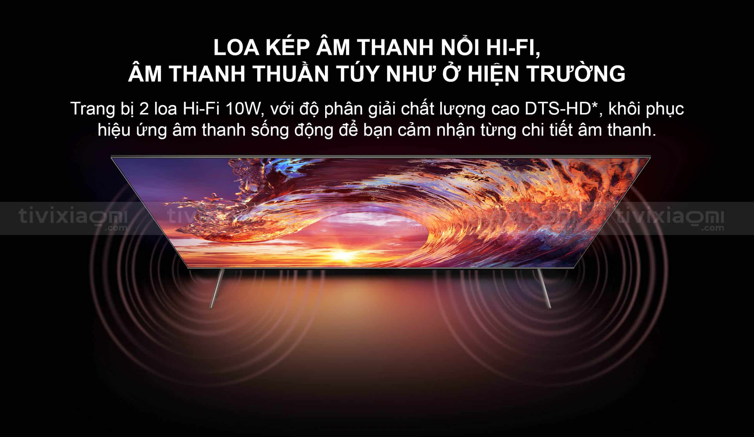 Trang bị 2 loa Hi-Fi 10W, với độ phân giải chất lượng cao DTS-HD*, Siêu phẩm Redmi Smart TV X85 85 inches khôi phục hiệu ứng âm thanh sống động để bạn cảm nhận từng chi tiết âm thanh.