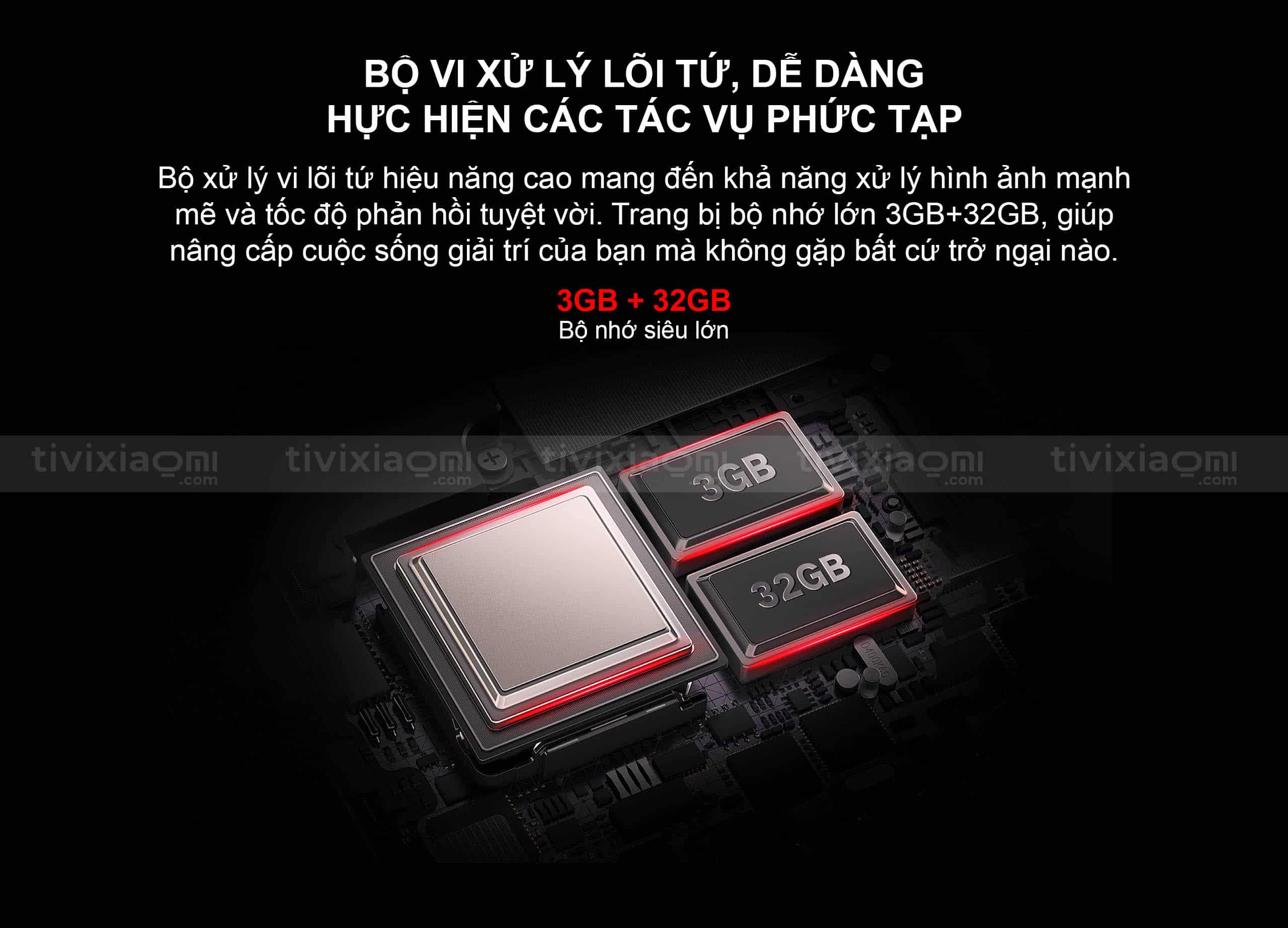 Bộ vi xử lý lõi tứ hiệu năng cao mang đến khả năng xử lý hình ảnh mạnh mẽ và tốc độ phản hồi tuyệt vời. Trang bị bộ nhớ lớn 3GB+32GB, giúp nâng cấp cuộc sống giải trí của bạn mà không gặp bất cứ trở ngại nào. Wi-Fi băng tần kép kết nối ổn định. Siêu phẩm Redmi Smart TV X85 85 inches sở hữu đa dạng cổng kết nối HDMI, USB 3.0, thỏa thích kết nối với máy tính và loa, đáp ứng nhiều nhu cầu giải trí khác nhau.