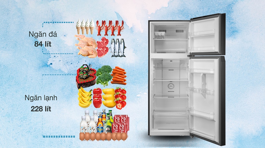 - Dung tích lớn 338 lít, thích hợp cho gia đình 4 – 5 người.