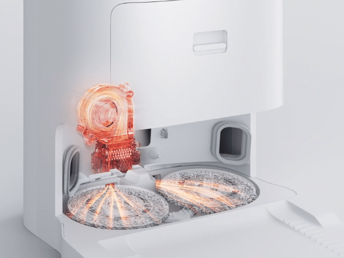 Máy đi kèm dock với hai bình chứa nước, mỗi bình dung tích 4 lít giúp chứa nước sạch và nước bẩn sau khi giặt. Chân đế có hệ thống sấy khô giẻ bằng khí nóng, tăng hiệu quả 70% so với bản STYTJ06ZHM. Máy cũng sử dụng cơ chế lau với hai giẻ xoay hai bên tương tự W10. Khi lau, phần giẻ tạo áp lực 10 N xuống sàn nhà. Robot cũng tự nâng giẻ lên 7 mm khi đi qua thảm với độ cao 5 mm để tránh bị mắc kẹt.