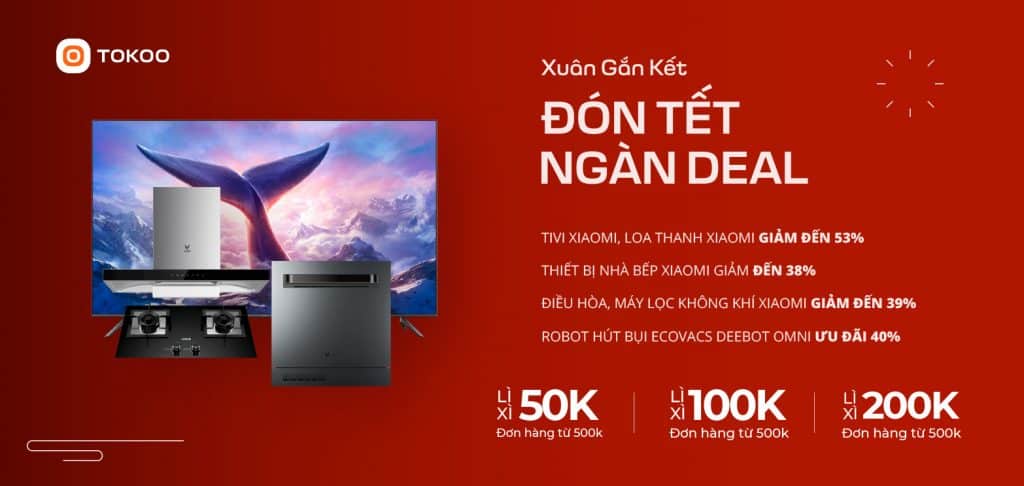 Chào đón không khí nôn nao Tết Nguyên Đán, TOKOO hân hạnh mang đến cho quý khách hàng chương trình khuyến mãi hấp dẫn đầu năm – thời điểm của niềm vui và ưu đãi. Hãy cùng chúng tôi khám phá những ưu đãi đặc biệt từ thương hiệu Xiaomi, Ecovacs.